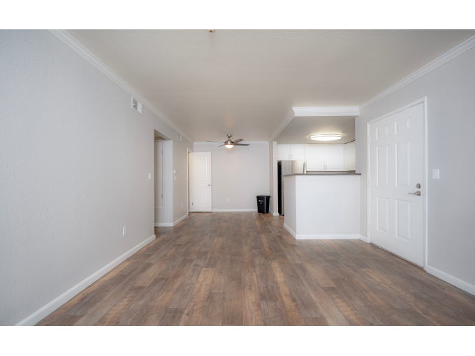 Residence 1: One Bedroom / One Bath 639 Sq. Ft. The master suite of this residence creates the ultimate cozy retreat with its corner location, allowing the abundance of windows to bathe your suite in warm natural light. A large walk-in closet, private patio and other convenient features are designed to thoughtfully accommodate those who wish to relax and recharge after a busy day.