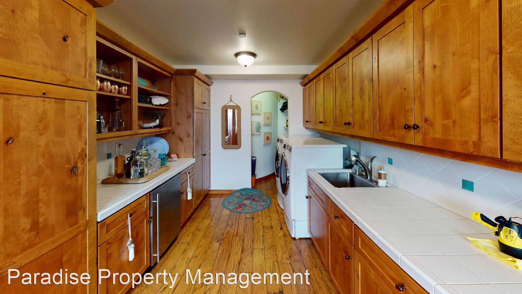 The first floor also features a large laundry room with front loading top end washer & dryer, an under sink refrigerator, utility sink and tons of cabinets and counter space, and a built-in desk.
