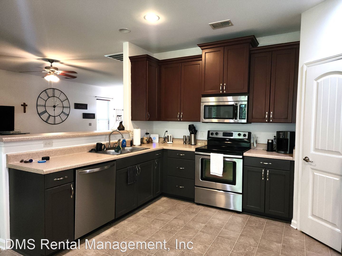 Open floor plan. Family room open to kitchen and eat in area. Fully furnished kitchen.
