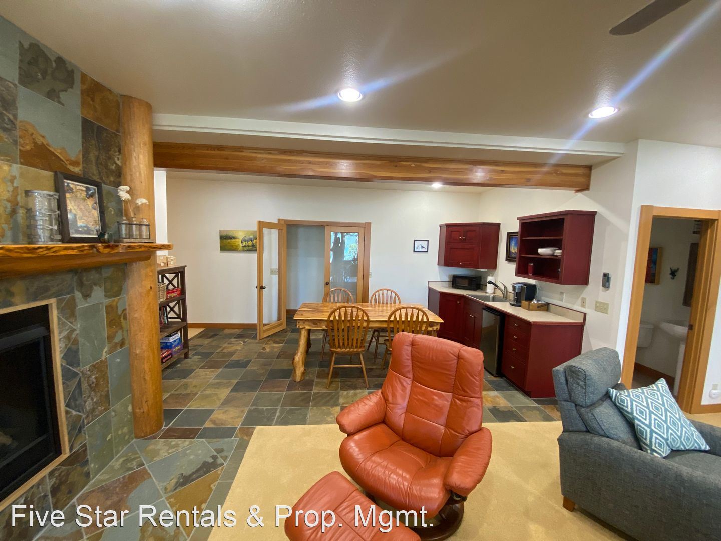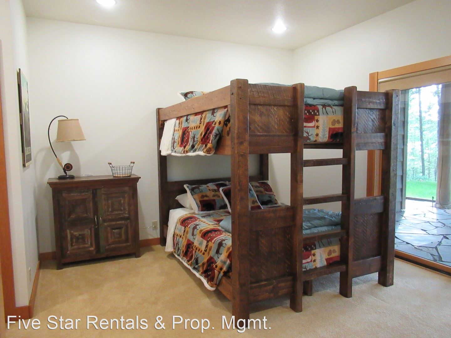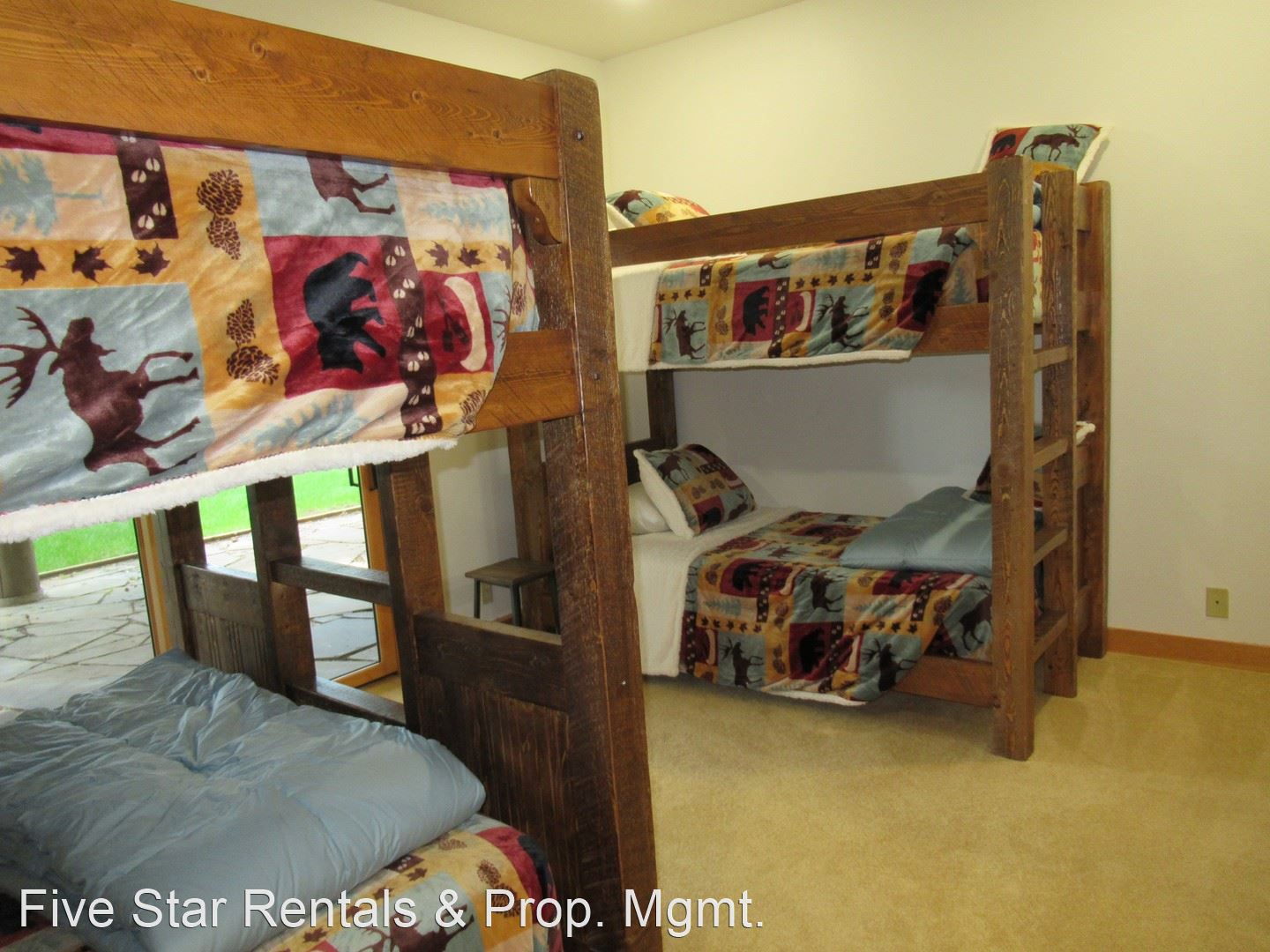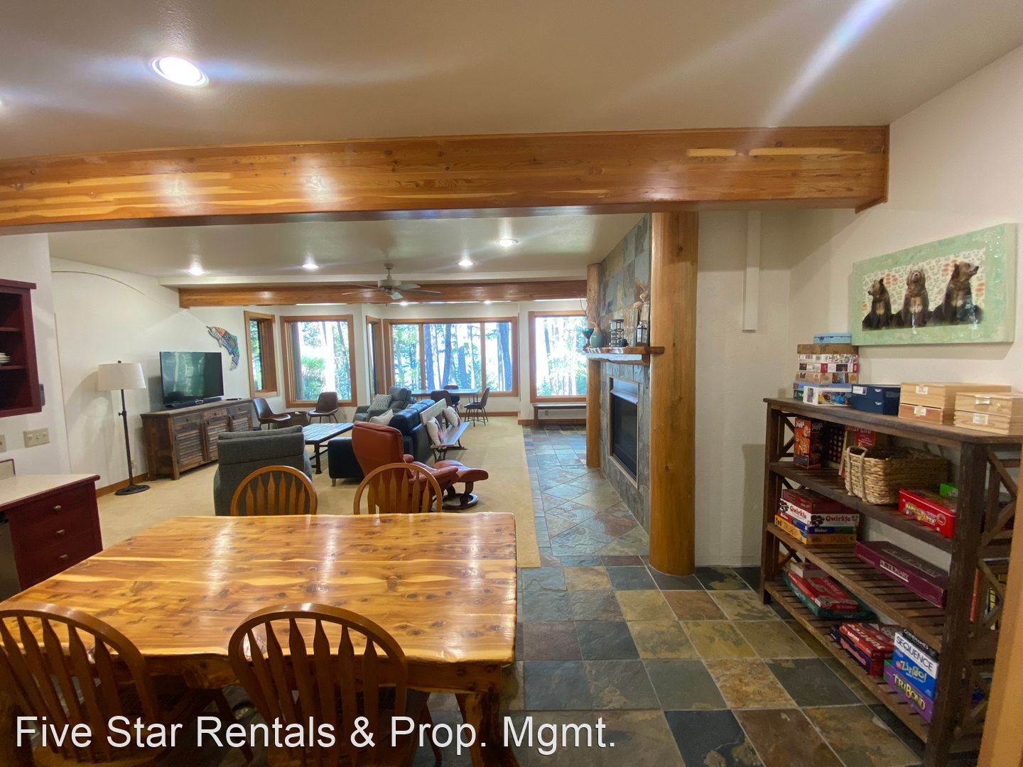 Head downstairs into the family room with gas fireplace; bar area; and plenty of rooms for games, reading or gazing out the window. Half bath for this area and as you head down the hallway you find the the bunk room with a set of Queen Bunks and a set of Twin Bunks. A full bathroom for that bedroom. Farther down the hall takes you to the Cowgirl Queen Suite with a private bathroom.