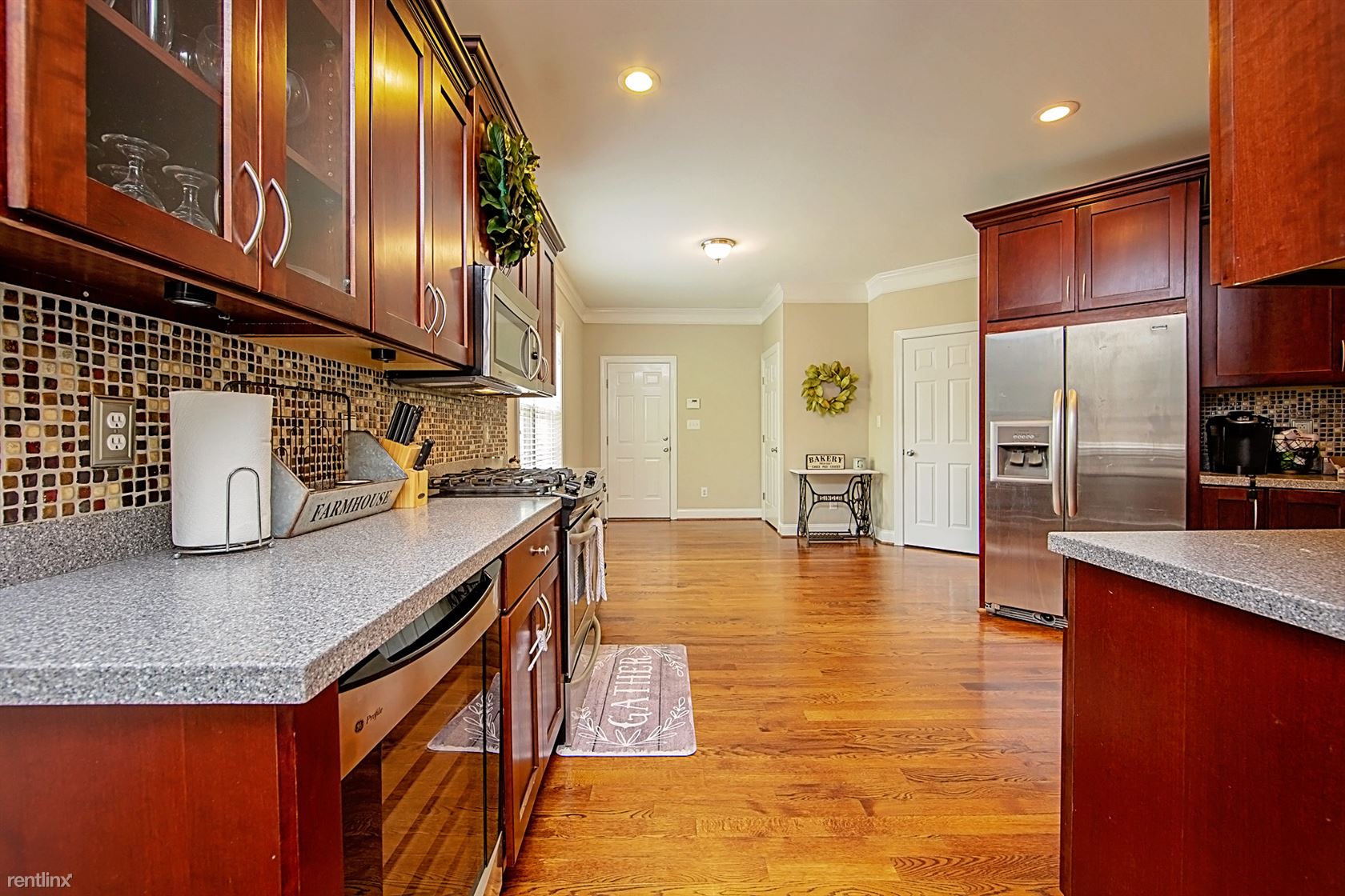 The property is tucked away onto a quiet cul-de-sac in a gated community near Wooded Lake and King's Grant Golf and Country Club. This home features 3 bedrooms, each with a closet and 2 bathrooms. The master bathroom includes a garden tub and a separate shower. Hardwood floors and stainless steel appliances are only a few of the lovely features. This home is pet friendly and has a huge, privacy-fenced backyard.
