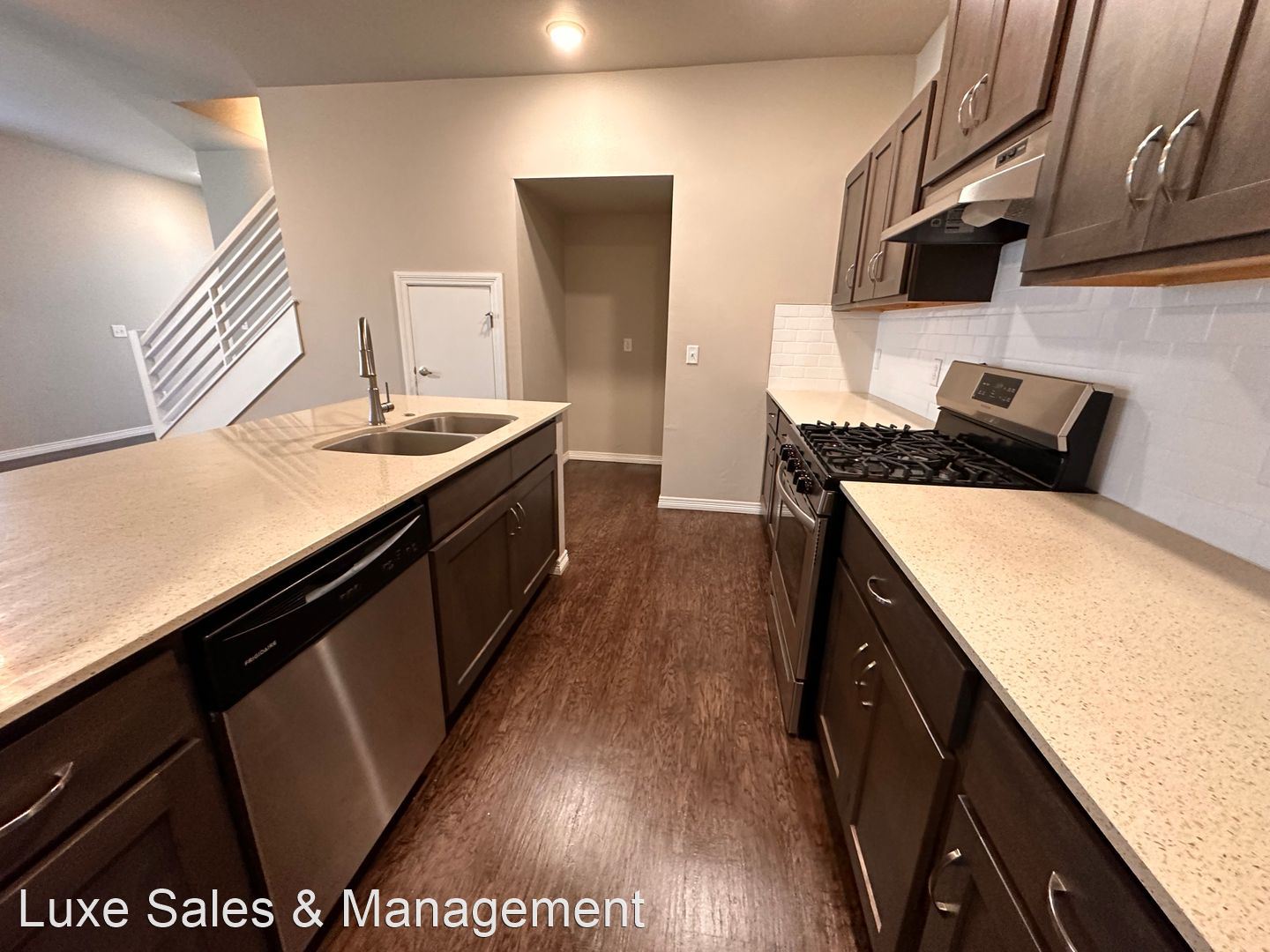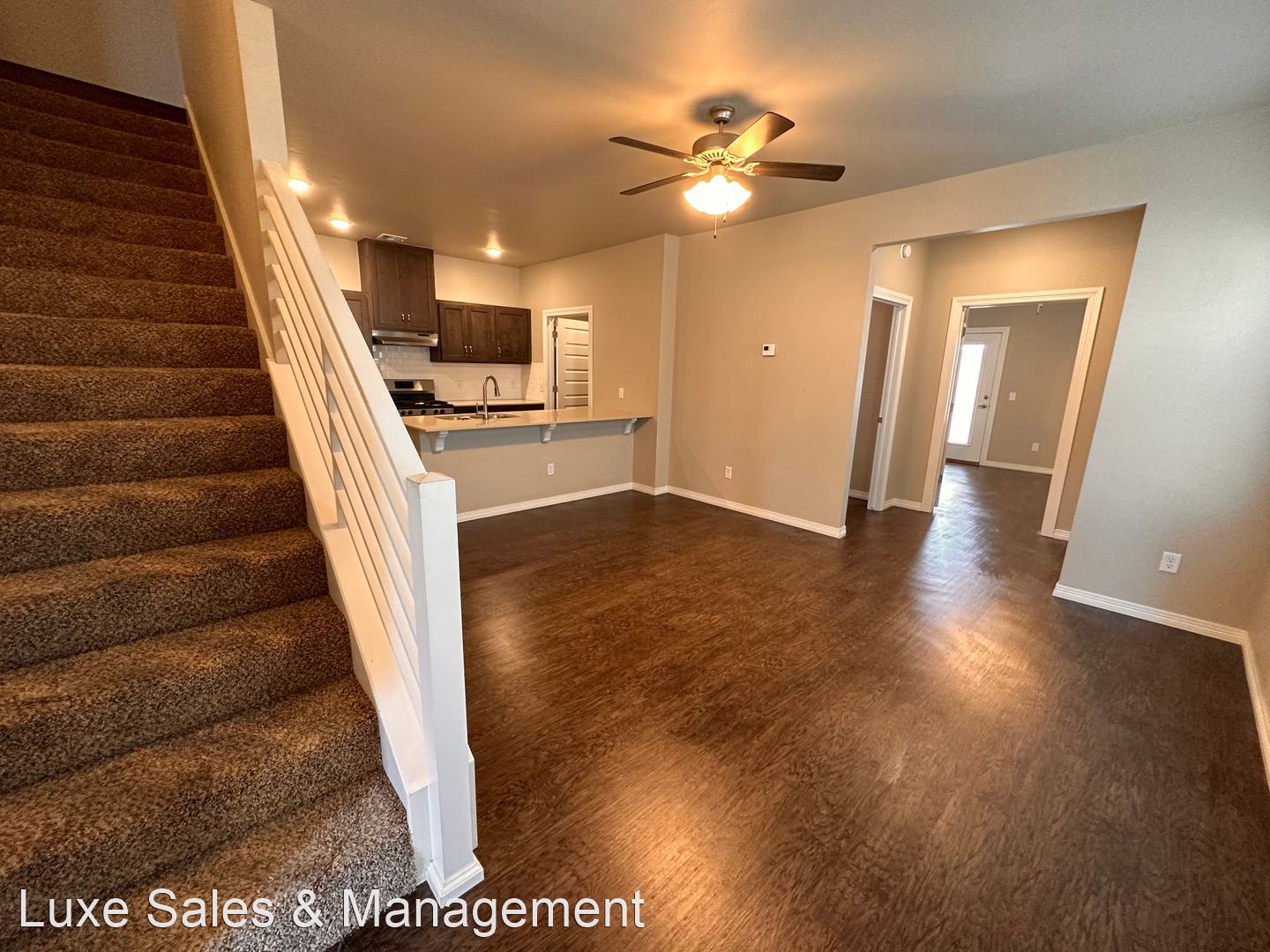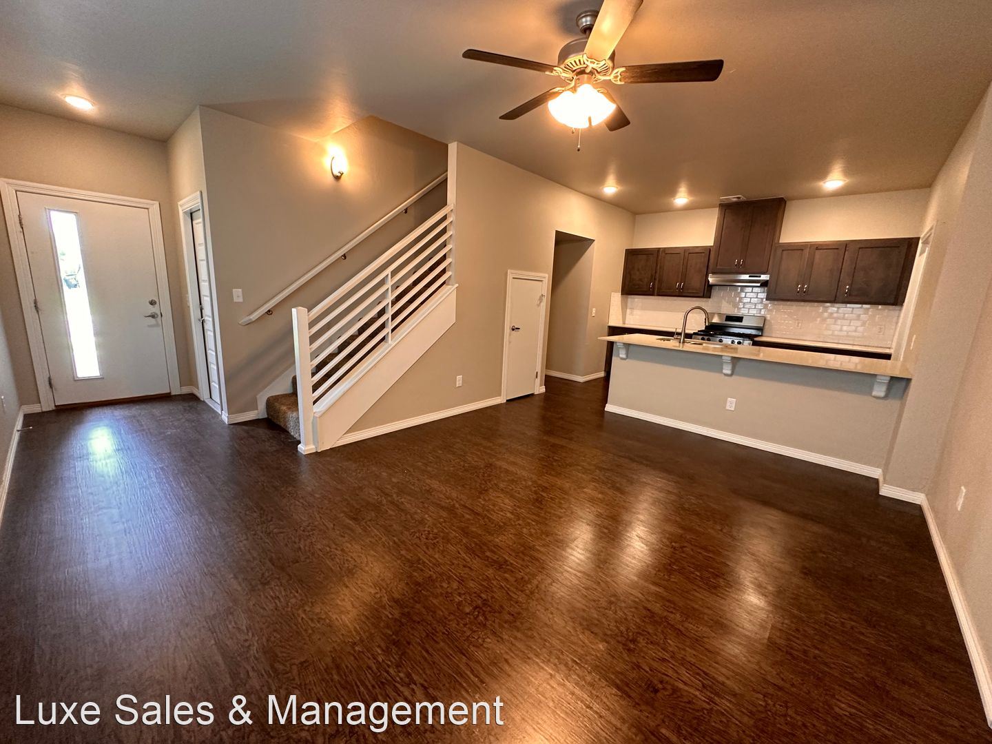 Beautiful Duplex In Edmond * 3/2/2 with Lawn Care Included (15th & Sante Fe) - Contemporary design inside and out, easy to maintain and super cute! Lawn Care is included in the HOA. Luxury finishes such as quartz counters, luxury vinyl wood look flooring, and carpet in the bedrooms. Kitchen has stainless steel appliances, ceiling fans, blinds on windows and LED lighting throughout. Open concept kitchen, living, dining includes large peninsula island and plenty of cabinets, large laundry room w/ pantry storage, plus some under stair storage. Half bath, master bedroom and master bathroom suite downstairs. There is also a private entrance to small fenced yard with patio. Upstairs are 2 bedrooms with landing space and shared hall bath with tub/shower. Energy Efficient...save lots in utility cost with tankless hot water heater, high efficiency gas furnace, programmable zoned thermostats for up and downstairs, LED lighting PLUS more.
